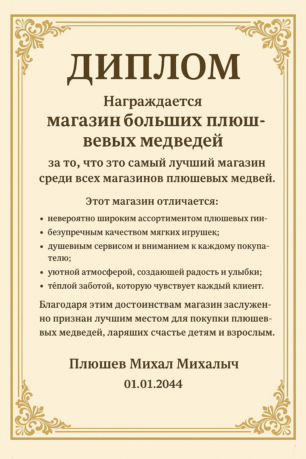 за то, что это самый лучший магазин среди всех магазинов плюшевых медведей.